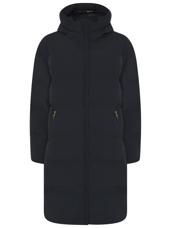 Dunjakken er quiltet og har lommer i siden med lynlås.