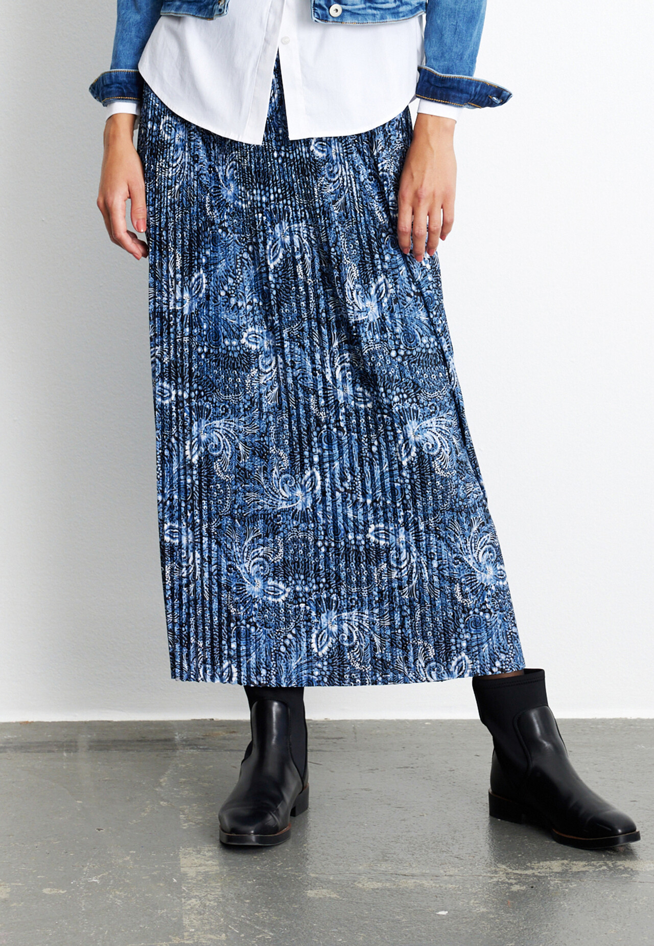 Skøn nederdel fra INFRONT. Plisseret nederdel i en klædelig ankel længde. Der er elastik i taljen som giver en dejlig komfort. Smalle feminine plisseringer hele vejen ned. En smuk og anvendelig nederdel til hverdag og fest. • Jogly skirt • Pliss
