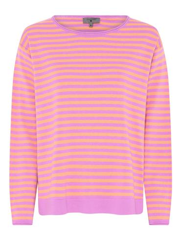 Lækker oversize bomuldsstrik fra Lundgaard. Den er stribet i flotte farver med ensfarvet rib. Kvalitet: 100% økologisk bomuld.